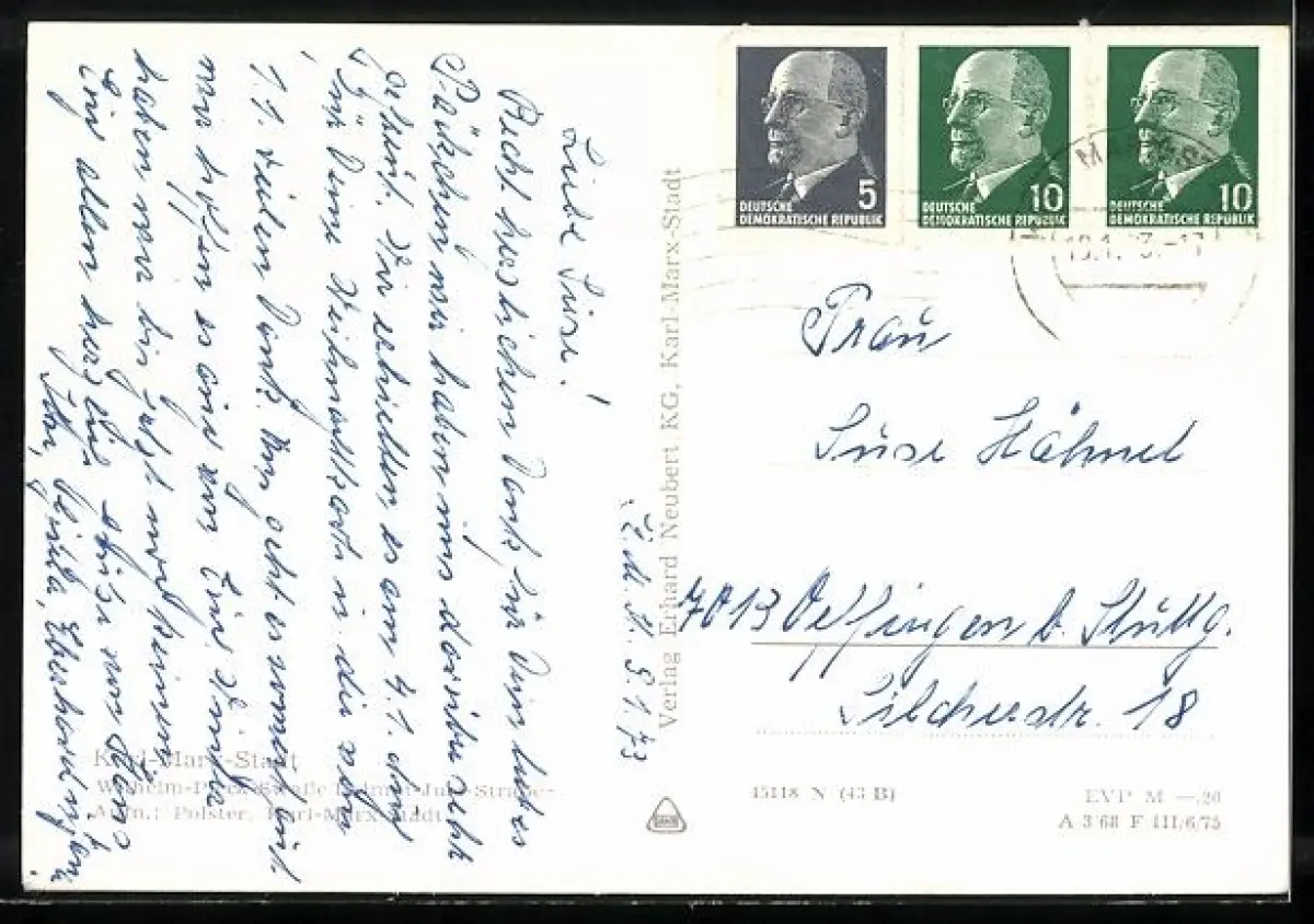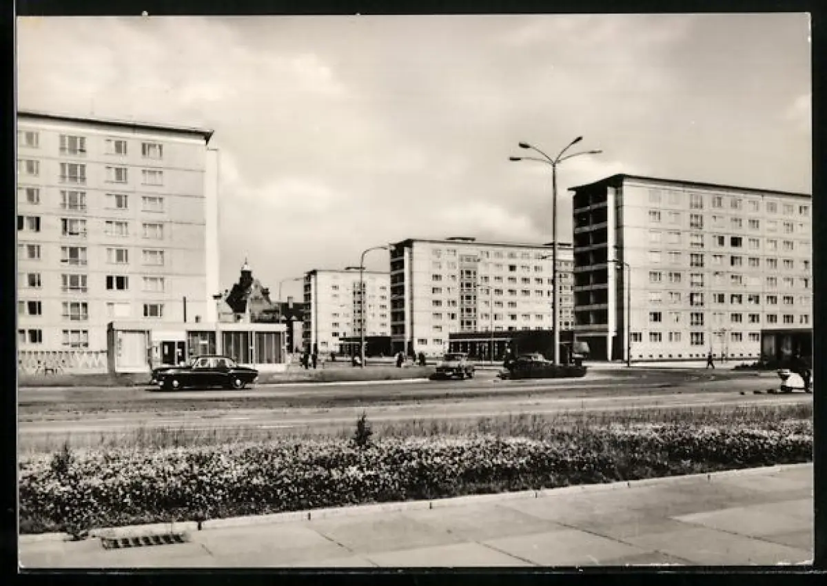 AK Karl-Marx-Stadt, Wilhelm-Pieck-Strasse mit Autos und Passanten