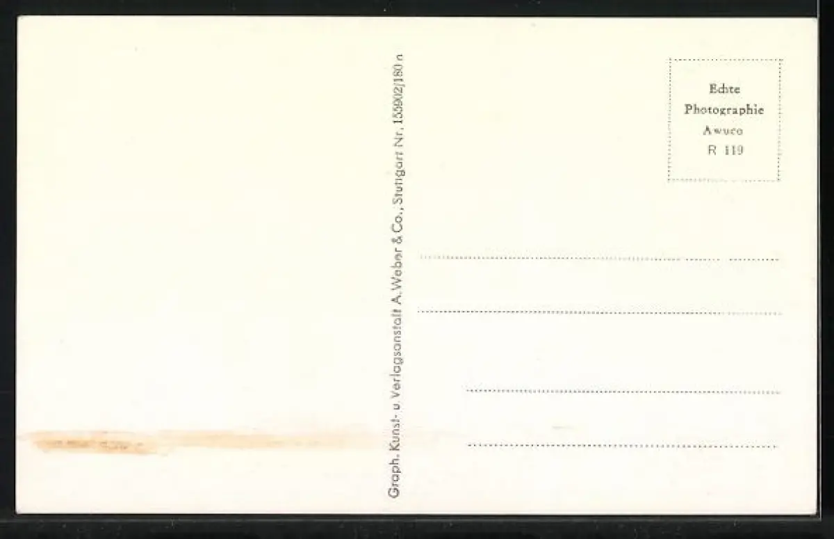 Personenbezogene Daten auf der Rückseite der Karte wurden durch blauen Textmarker unkenntlich gemacht. Die blauen Stellen sind auf die Vorderseite durchgeweicht und wirken sich negativ auf das Postkartenfoto aus
