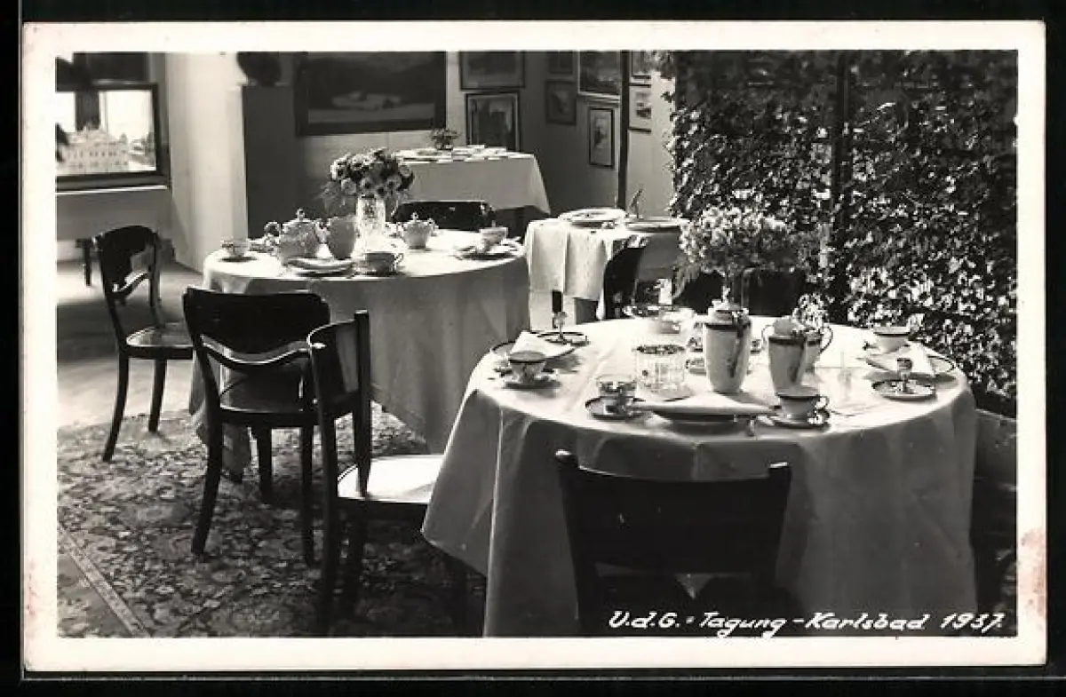 AK Karlsbad, Angerichtete Speisetische für die U.d.G.-Tagung in Karlsbad 1937