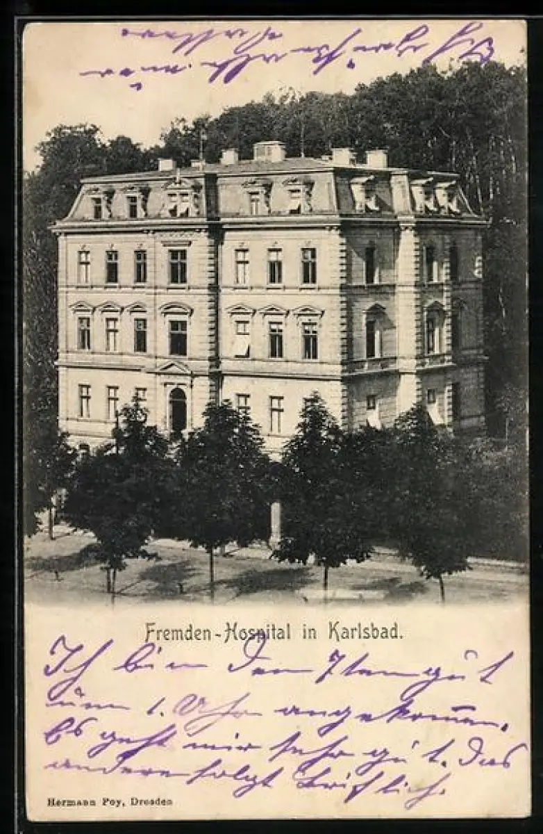 AK Karlsbad, Blick auf das Fremden-Hospital