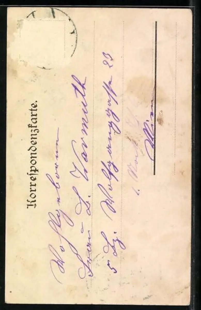 alte Ansichtskarte, gelaufen, Briefmarke entfernt, rückseitig Oberflächenschaden, Bugspur linke Kante, Eckknick rechts unten, sonst guter Zustand