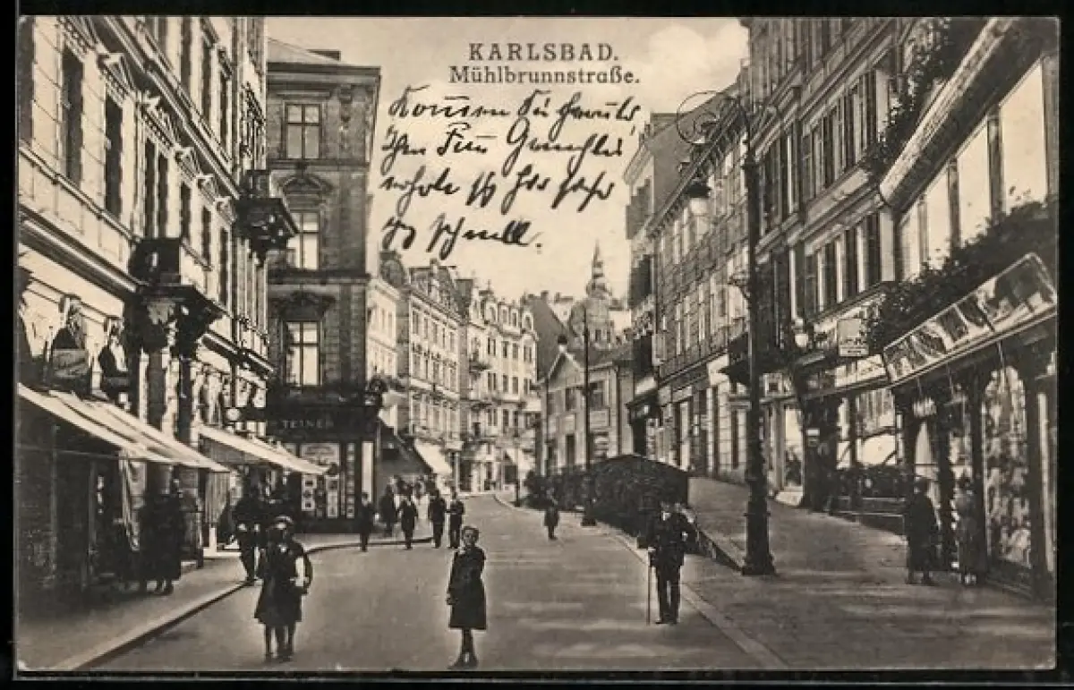 AK Karlsbad, Blick in die Mühlbrunnstrasse