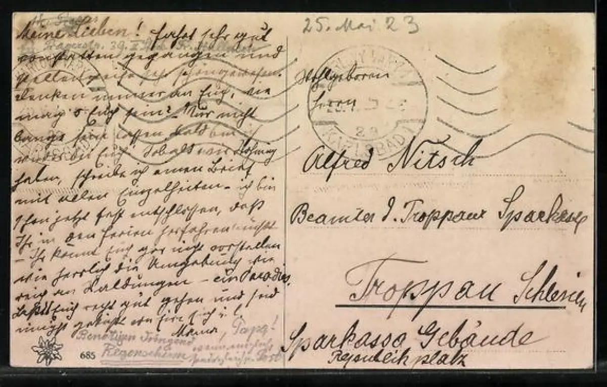 alte Ansichtskarte, gelaufen 1923, Briefmarke entfernt, guter Zustand