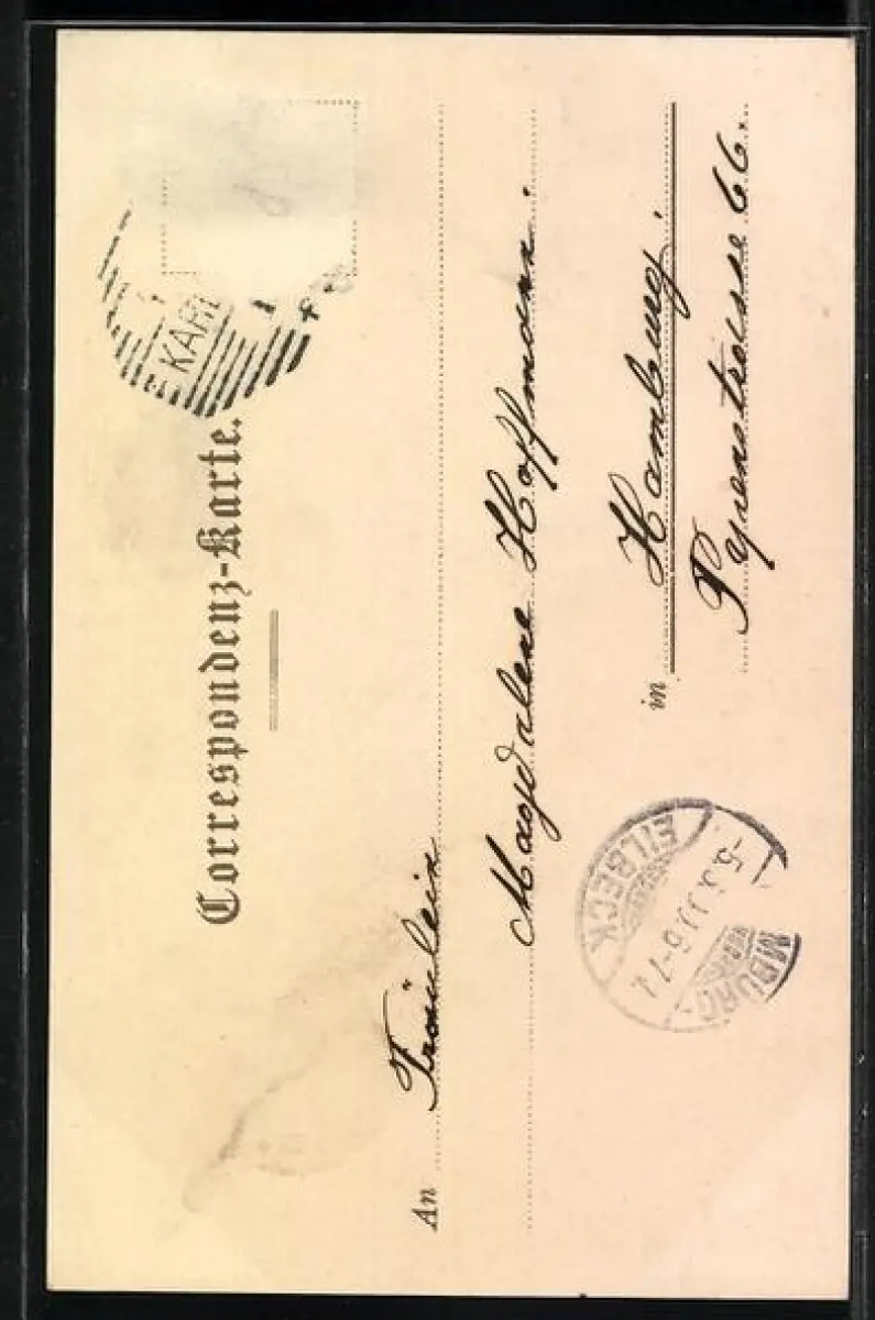 alte Ansichtskarte, gelaufen, Briefmarke entfernt, rückseitig Oberflächenschaden, sonst guter Zustand