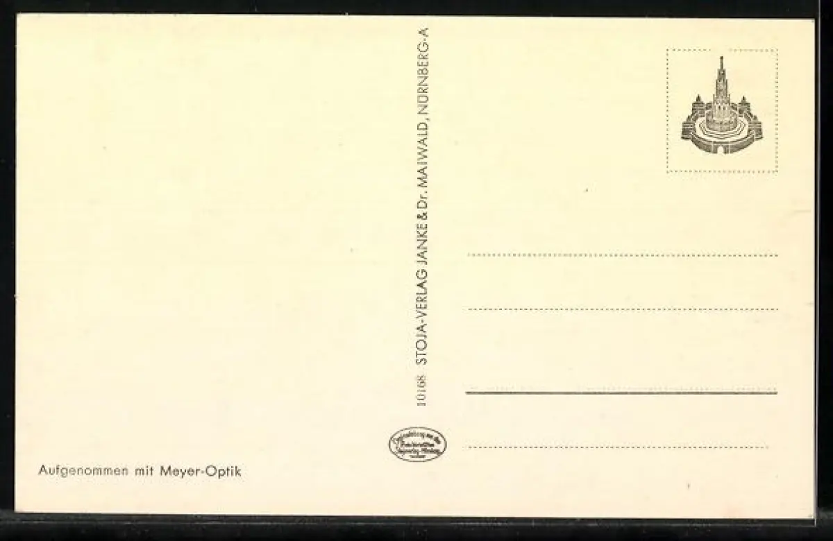 Personenbezogene Daten auf der Rückseite der Karte wurden durch blauen Textmarker unkenntlich gemacht. Die blauen Stellen sind auf die Vorderseite durchgeweicht und wirken sich negativ auf das Postkartenfoto aus