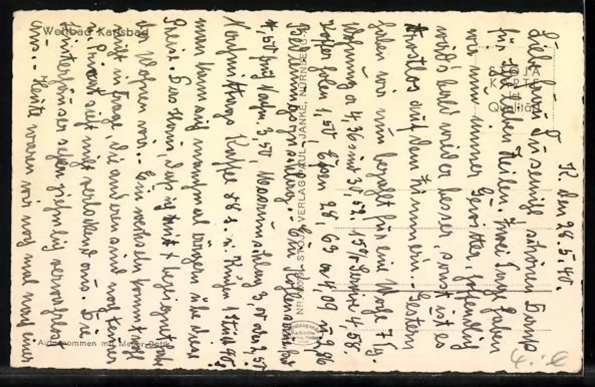 Personenbezogene Daten auf der Rückseite der Karte wurden durch blauen Textmarker unkenntlich gemacht. Die blauen Stellen sind auf die Vorderseite durchgeweicht und wirken sich negativ auf das Postkartenfoto aus
