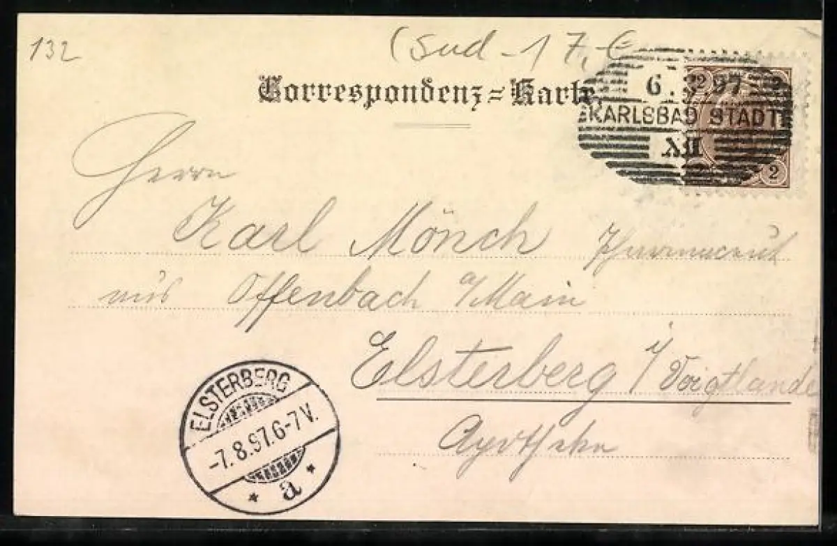 alte Ansichtskarte, gelaufen 1897, Eckknick li. oben, guter Zustand