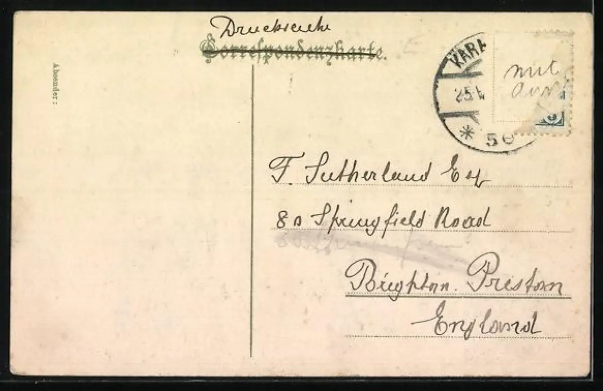 alte Ansichtskarte, gelaufen, Briefmarke entfernt, Eckknick rechts oben, guter Zustand