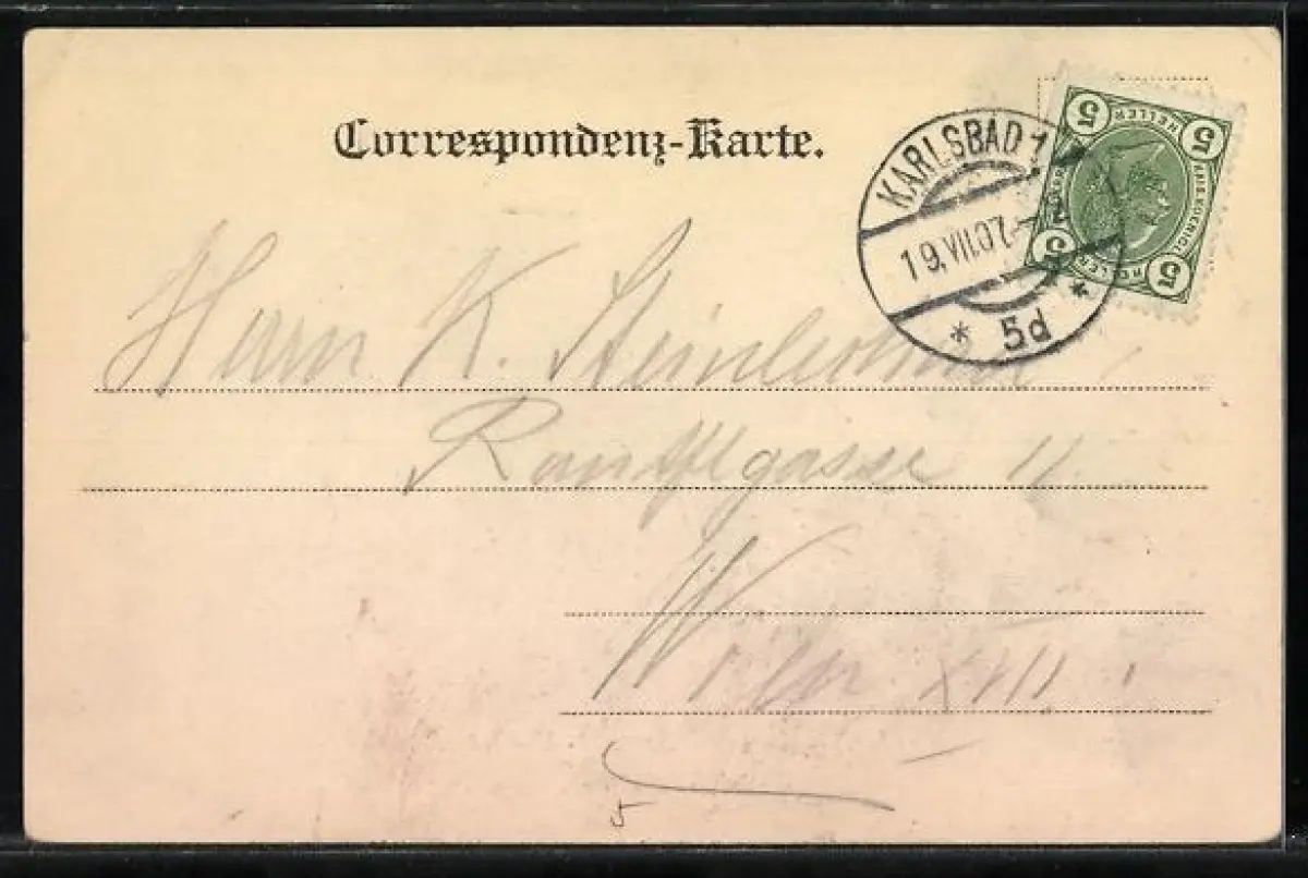 alte Ansichtskarte, gelaufen 1907, Eckknick li. unten, guter Zustand