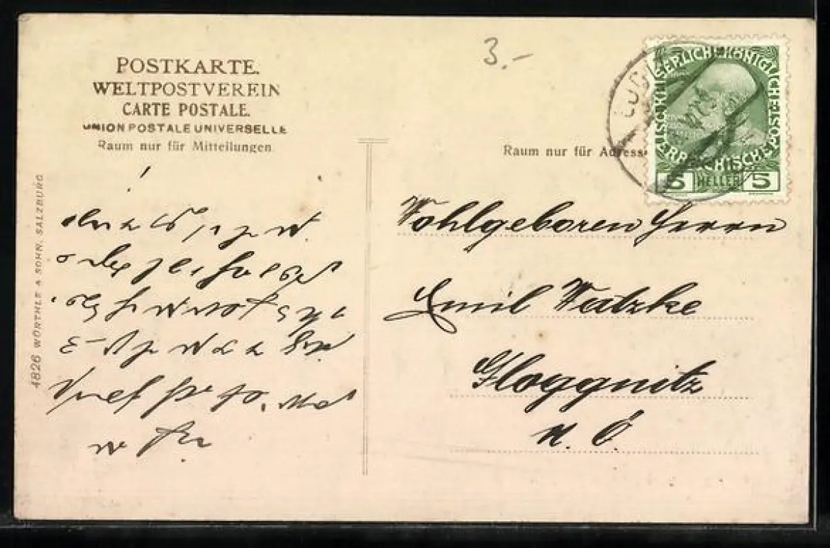 alte Ansichtskarte, gelaufen 1909, guter Zustand