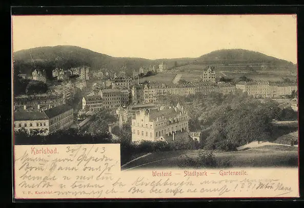 AK Karlsbad, Westend, Stadtpark, Gartenzeile
