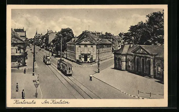 AK Karlsruhe, Am Karlstor, mit Strassenbahn