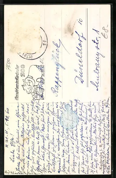 alte Ansichtskarte, gelaufen 1960, Briefmarke entfernt, guter Zustand