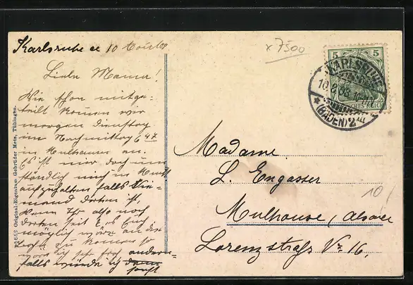 alte Ansichtskarte, gelaufen 1908, guter Zustand
