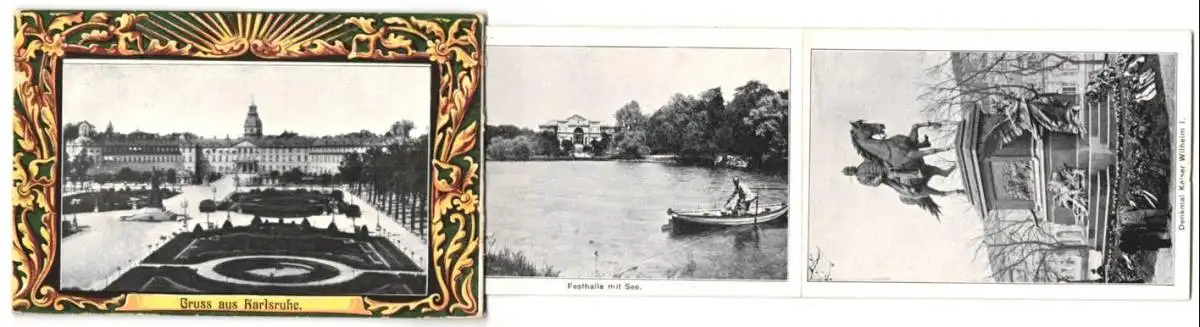 AK Karlsruhe, Das Schloss, Denkmal Kaiser Wilhelms I., Kaiserstrasse und Post, Schwarzwaldhaus mit Lauterberg