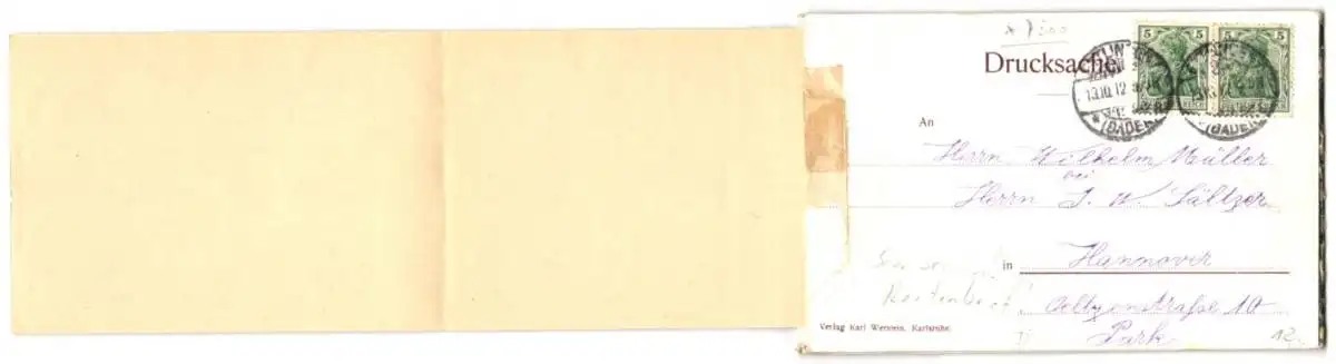 alte Ansichtskarte, gelaufen 1912, Einrisse am Verschluss, guter Zustand