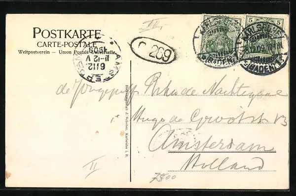 alte Ansichtskarte, gelaufen 1909, Stempelspur, guter Zustand