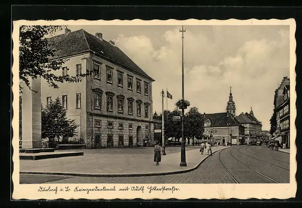AK Karlsruhe-Durlach, Kriegerdenkmal mit der strasse