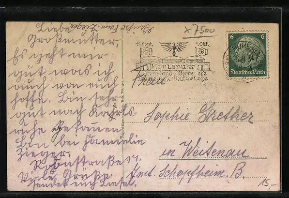 alte Ansichtskarte, gelaufen 1934, guter Zustand