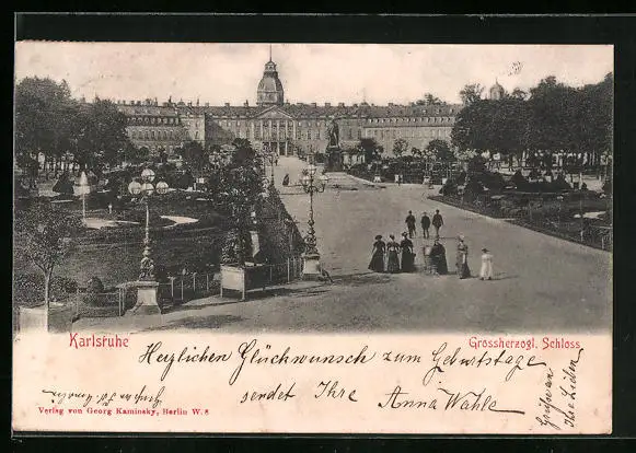 AK Karlsruhe, Grossherzogl. Schloss mit Denkmal