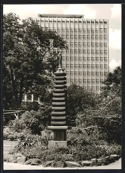 AK Karlsruhe, Japanischer Garten mit Denkmal