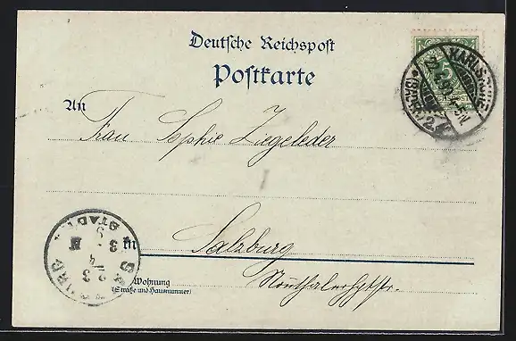 alte Ansichtskarte, gelaufen 1899, guter Zustand