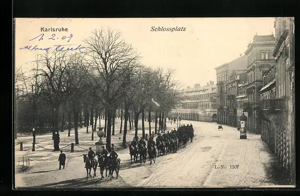AK Karlsruhe, Marsch auf dem Schlossplatz