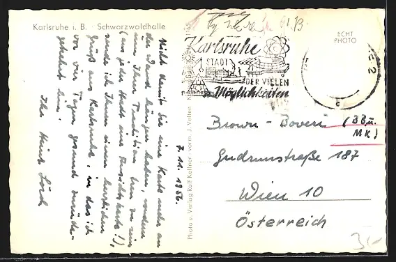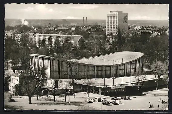 AK Karlsruhe, Ortsansicht mit Schwarzwaldhalle