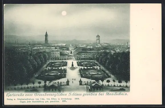 AK Karlsruhe, Ortsansicht vom Grossherzoglichen Schloss bei Mondschein