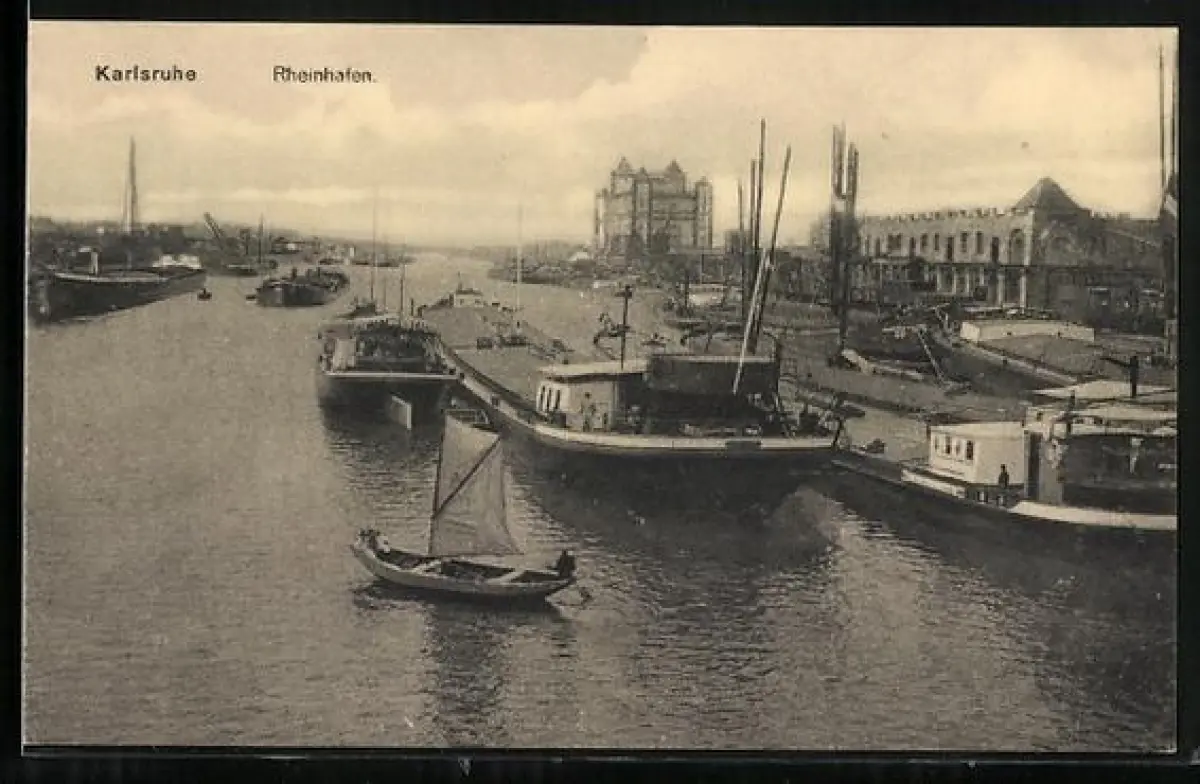 AK Karlsruhe, Rheinhafen mit Booten