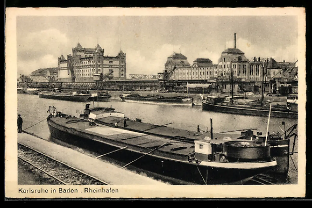 AK Karlsruhe, Rheinhafen mit Kuttern