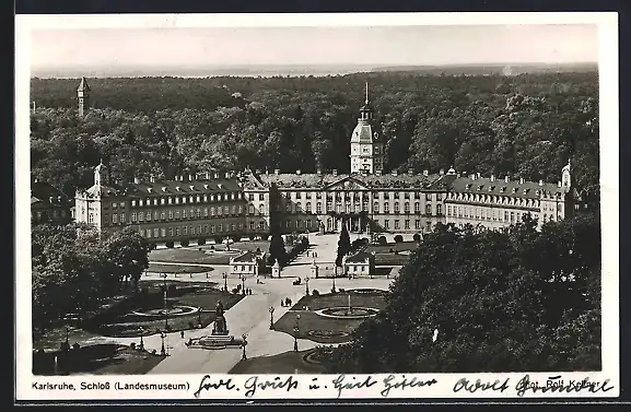 AK Karlsruhe, Schloss mit Landesmuseum aus der Vogelschau
