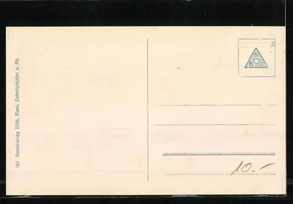Personenbezogene Daten auf der Rückseite der Karte wurden durch blauen Textmarker unkenntlich gemacht. Die blauen Stellen sind auf die Vorderseite durchgeweicht und wirken sich negativ auf das Postkartenfoto aus
