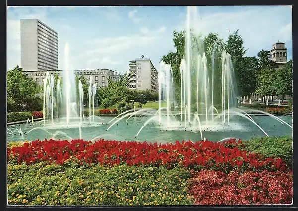 AK Karlsruhe, Wasserspiele mit bunten Blumen