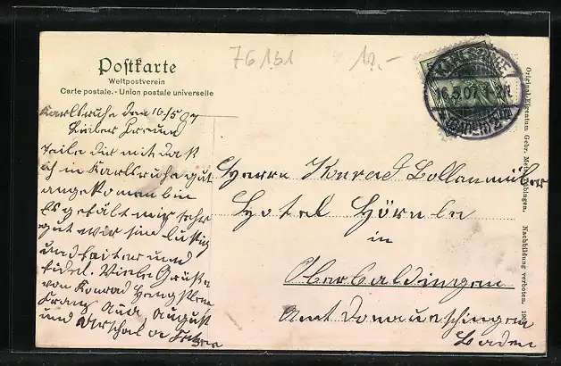 alte Ansichtskarte, gelaufen 1907, guter Zustand