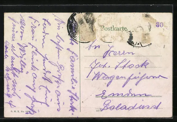 alte Ansichtskarte, gelaufen, Briefmarke entfernt, guter Zustand