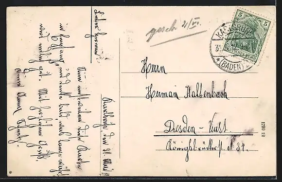 alte Ansichtskarte, gelaufen 1912, Eckknick li. oben, guter Zustand