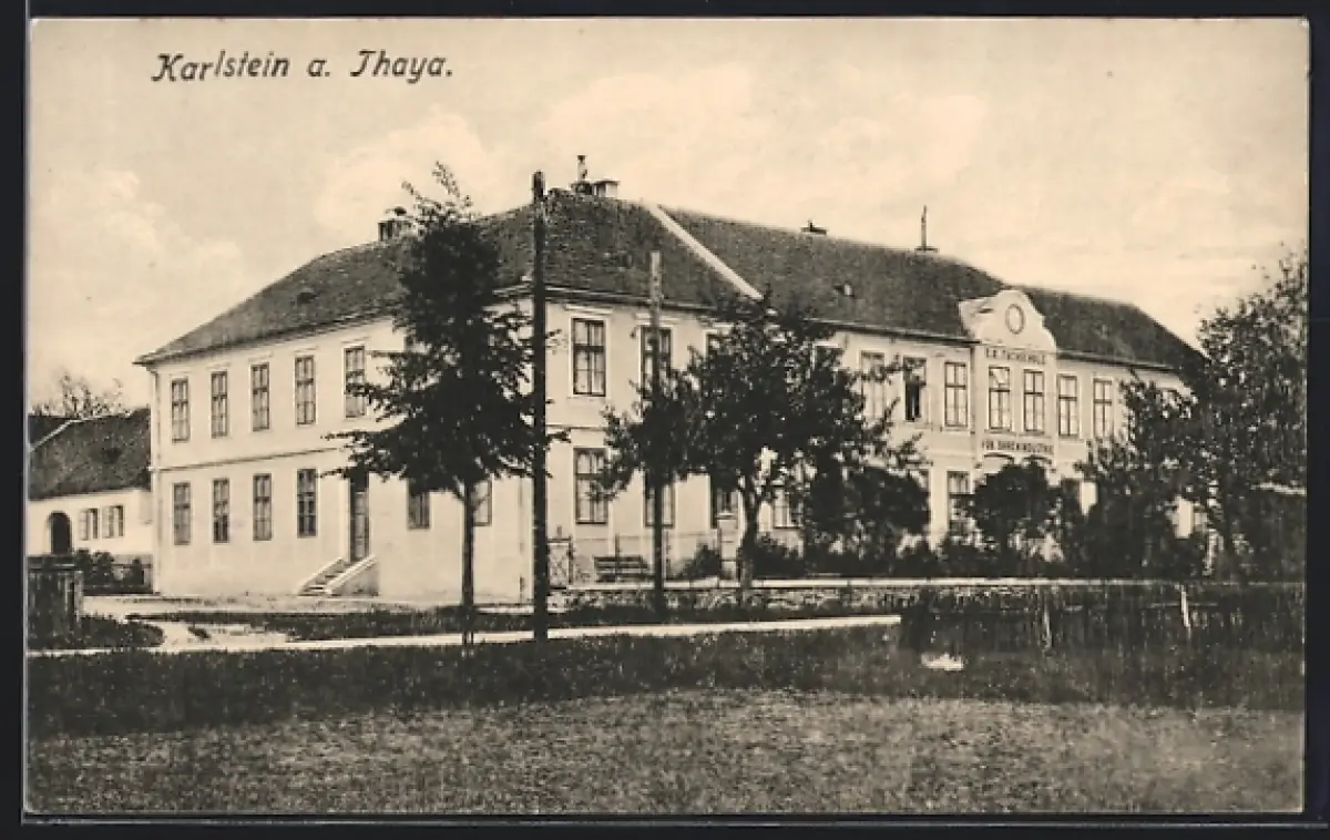 AK Karlstein a. Thaya, K. K. Fachschule für Uhrenindustrie, Totalansicht