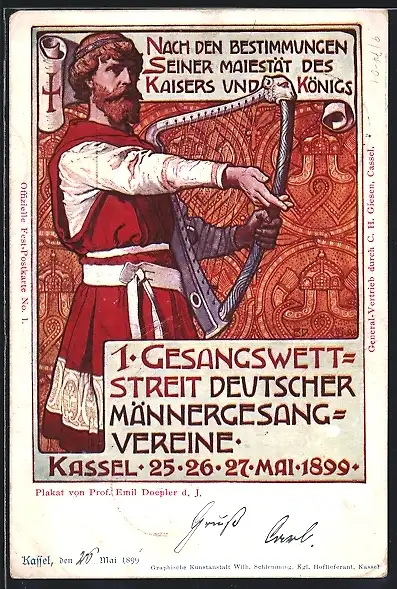 AK Kassel, 1. Gesangswettbewerb Dt. Männergesangvereine 1899, Ganzsache PP 9 /74-01