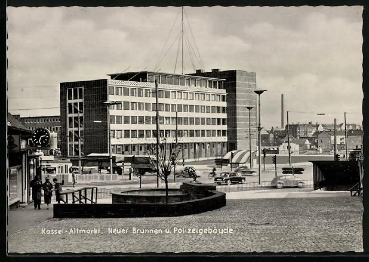 AK Kassel, Altmarkt, Neuer Brunnen, Polizeigebäude