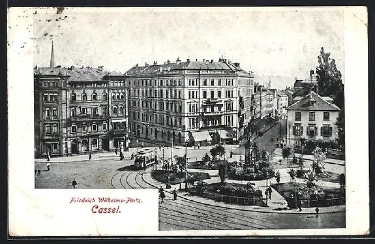 AK Kassel, Friedrich Wilhelms-Platz mit Strassenbahn
