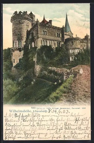 AK Kassel-Wilhelmshöhe, Blick auf Löwenburg