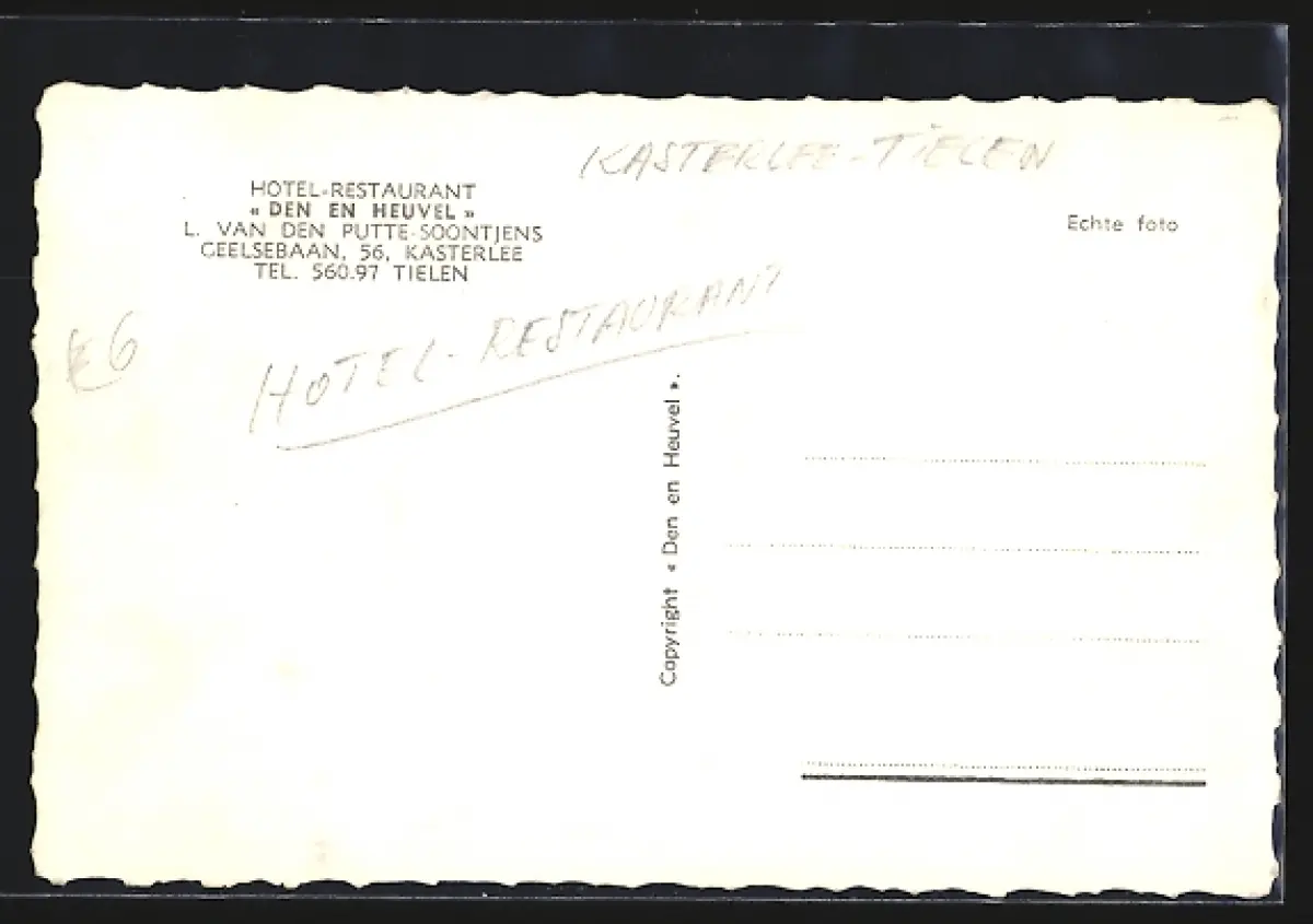 AK Kasterlee, Hotel Den en heuvel, Geelsebaan 56