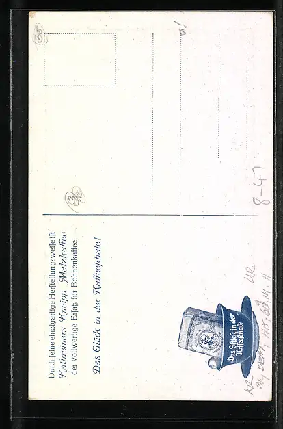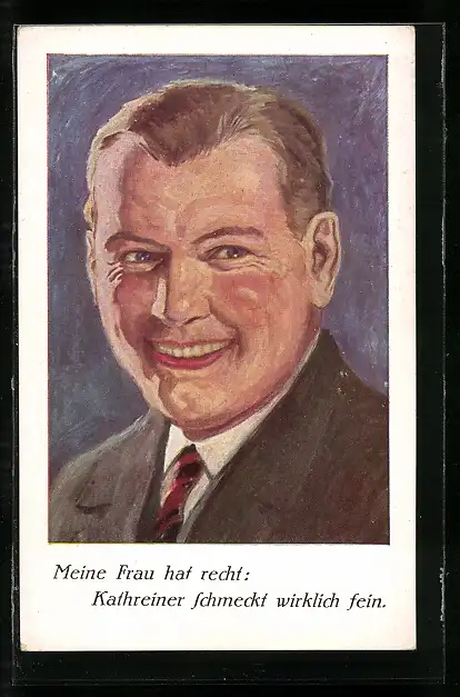 AK Kathreiners Kneipp Malzkaffee, lächelnde Mann erfreut über den Kaffee