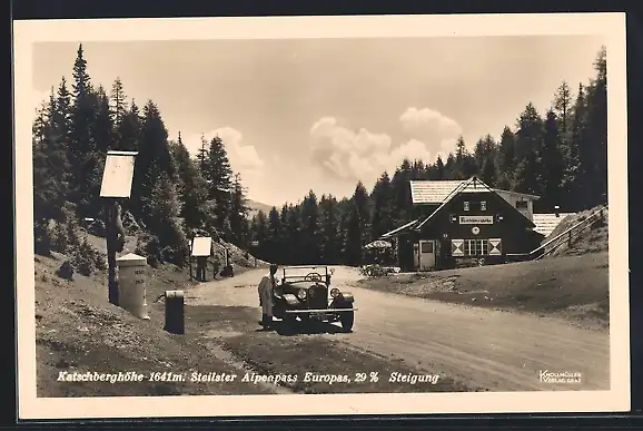 AK Katschberghöhe, Steilster Alpenpass Europas, Gasthaus