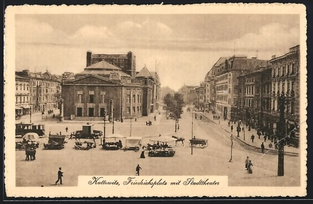 AK Kattowitz, Friedrichsplatz mit Stadttheater
