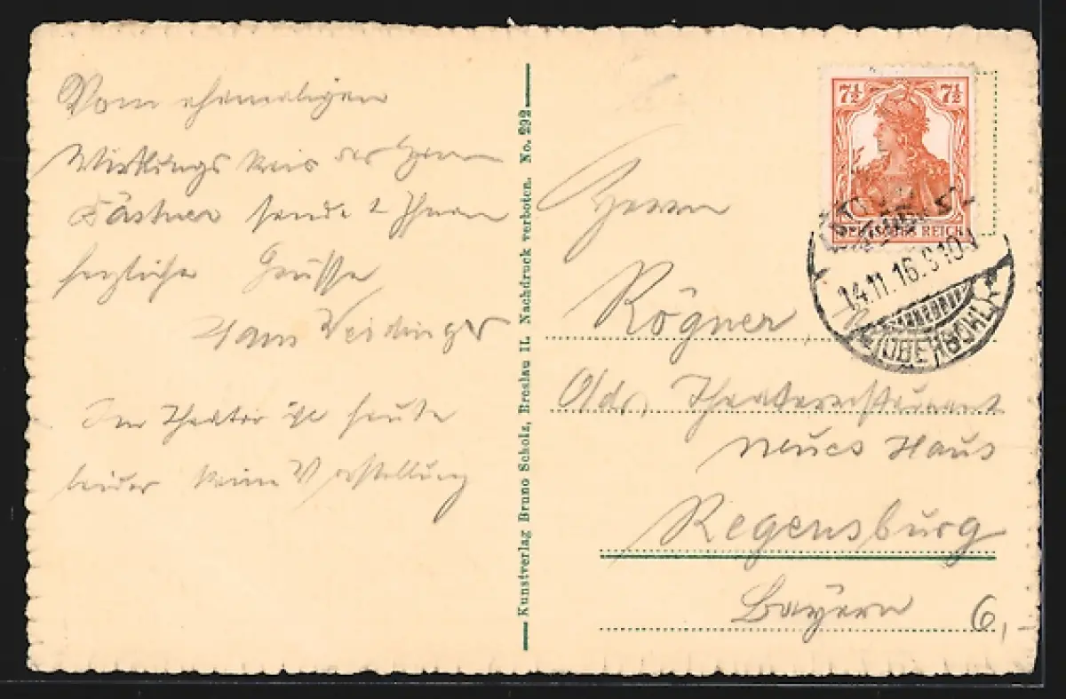 alte Ansichtskarte, gelaufen 1916, großer Eckknick rechts unten, sonst guter Zustand