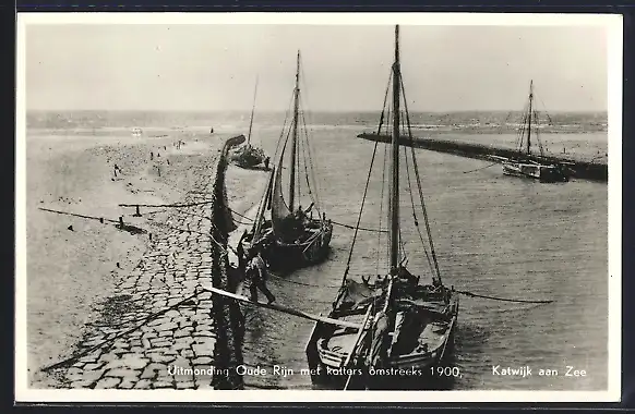 AK Katwijk aan Zee, Uitmonding Oude Rijn met kotters omstreeks 1900