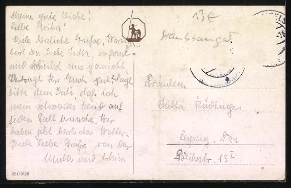 alte Ansichtskarte, gelaufen, Briefmarke entfernt, guter Zustand