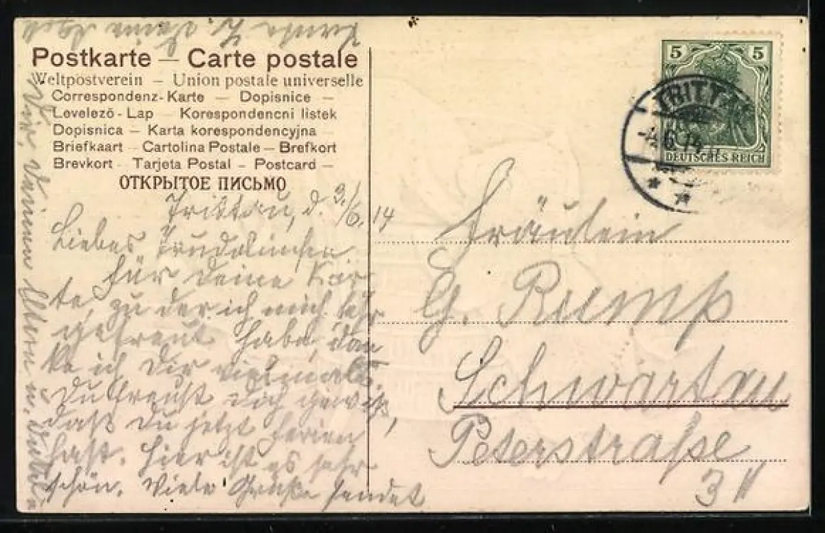 alte Ansichtskarte, gelaufen 1914, guter Zustand